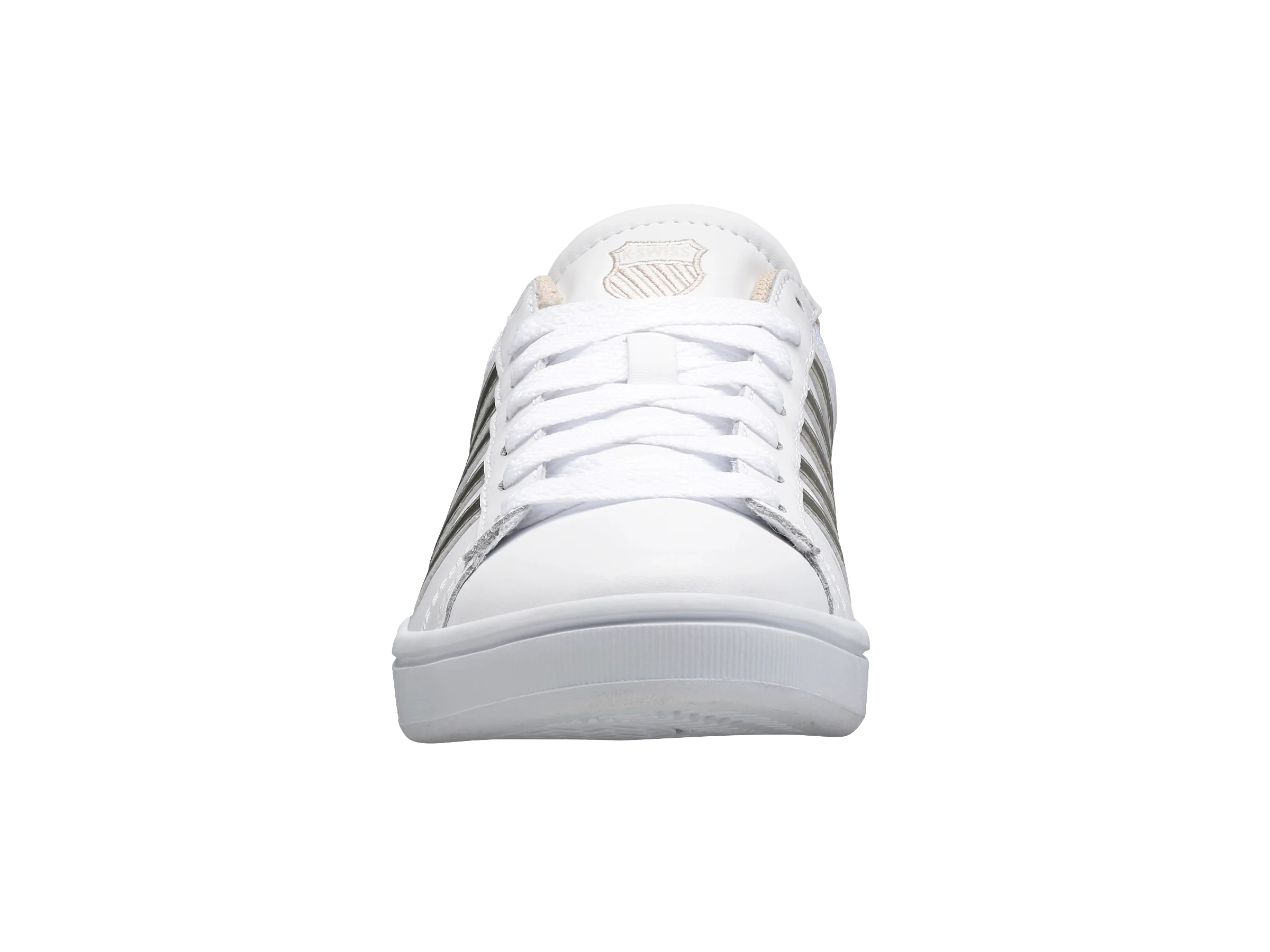 The Court Winston is a sleek, modern addition to K-Swiss ’ lineage of court sneakers. Made from smooth leather, the classic shoe features a traditional blucher toe for a polished look. The mesh lining makes the shoe breathable and comfortable. Leather overlays distinguish K-Swiss’ hallmark five stripes, which perfectly match the embroidered shield on the tongue . The Court Winston is a timeless style offering a dynamic look on and off the court.